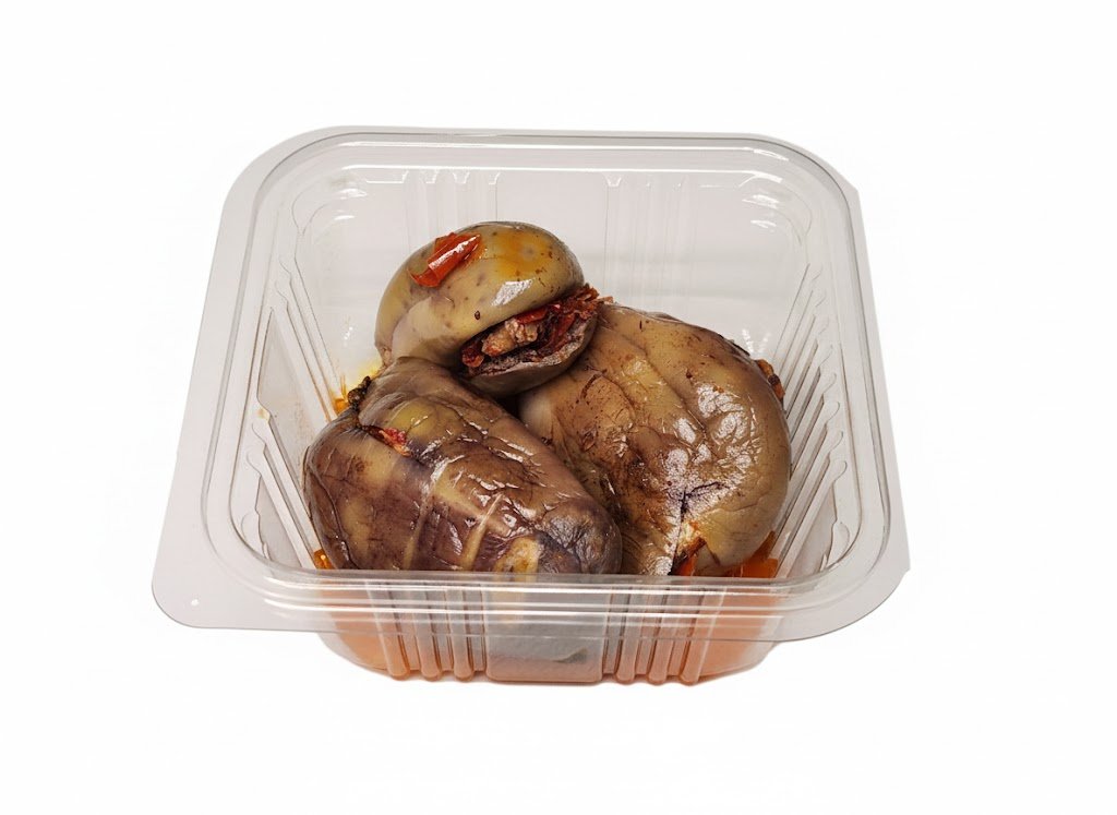 Melanzane ripiene di peperoncino, aglio e noci, marinate in olio
