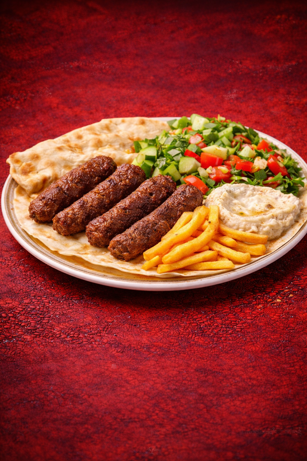 Cotolette pollo, formaggio, insalata, pomodoro, crema funghi, patate fritte
