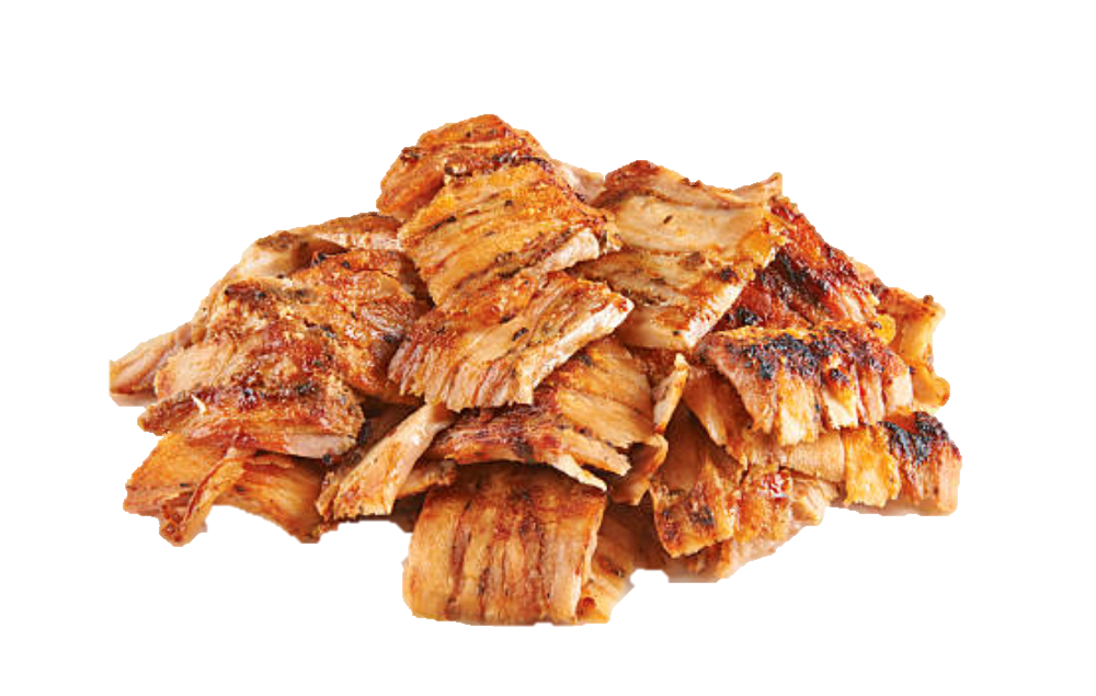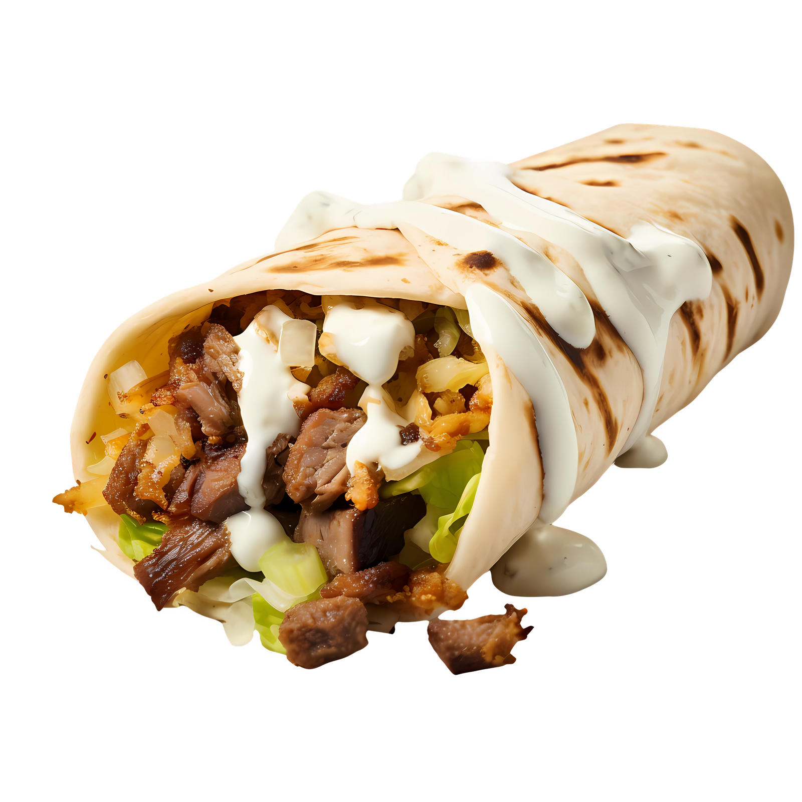 Pollo allo spiedo, crema di aglio, insalata, pomodoro, cipolla, salsa di sesamo
